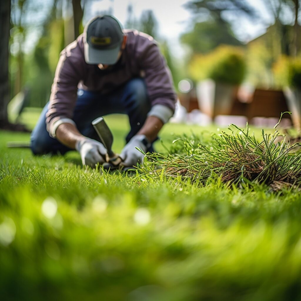 Corte y perfilado de césped con herramientas profesionales.